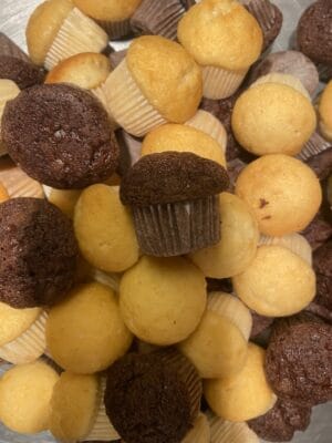 Home » Shop » High tea (diverse kleine lekkernijen) » Verse mini muffins 10 voor 3,75.