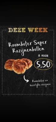 Home » Shop » Weekaanbieding » Roomboter super rozijnenbollen 8 voor 5,50.