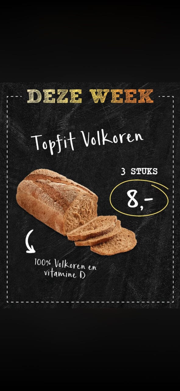 Home » Shop » Weekaanbieding » Topfit volkoren 3 stuks 8 euro.
